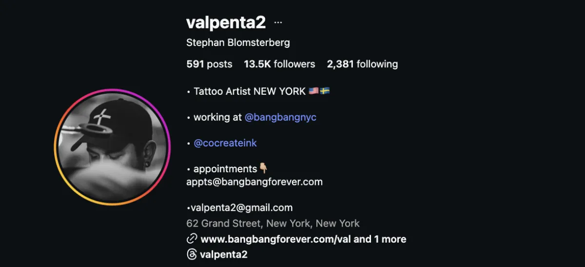 Get a tattoo at one of New York's leading studios and by me Valpenta, a swedish tattoo artist.